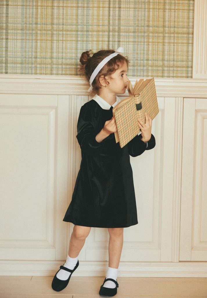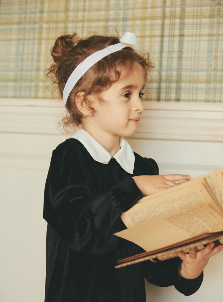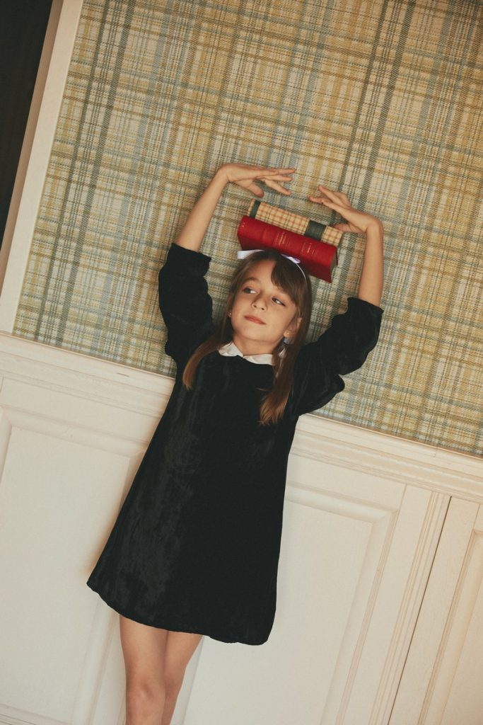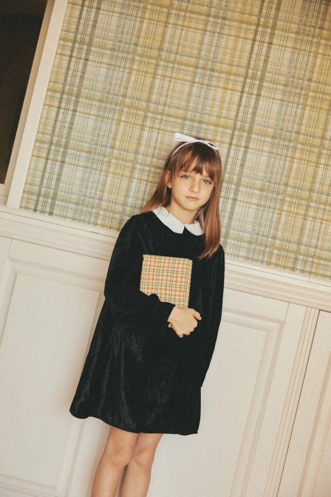VELVET FABCRIC MADE OF 100%VISCOSE (NATURAL FABRIC) WHITE COLLAR MADE OF COTTON 100% BACK CLOSING WITH METTALIC BUTTONS ELASTICATED LONG SLEEVE DOUBLE LINED FOR A CONFORTABLE WEAR WASHING AT 30 DEGREES